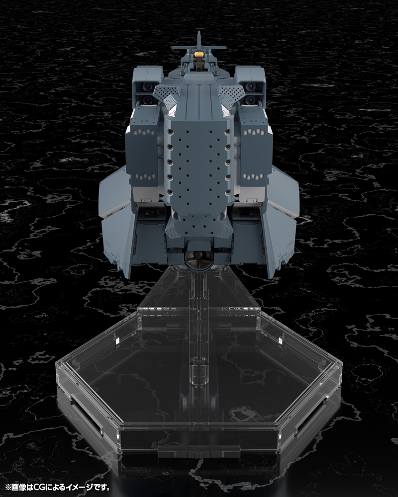 Legend of the Galactic Heroes: Die Neue These is joining the lineup in a large scale at 300mm! The approx. 900m warship has been recreated at 1/3000 scale, resulting in a model around 300mm in length. The design was supervised by original mecha designer Shinji Usui, with the complicated 3D shape based on various materials for a perfect recreation. The package design is newly illustrated by Kia Asamiya, and a display base in clear parts is included. A serial code for the game,