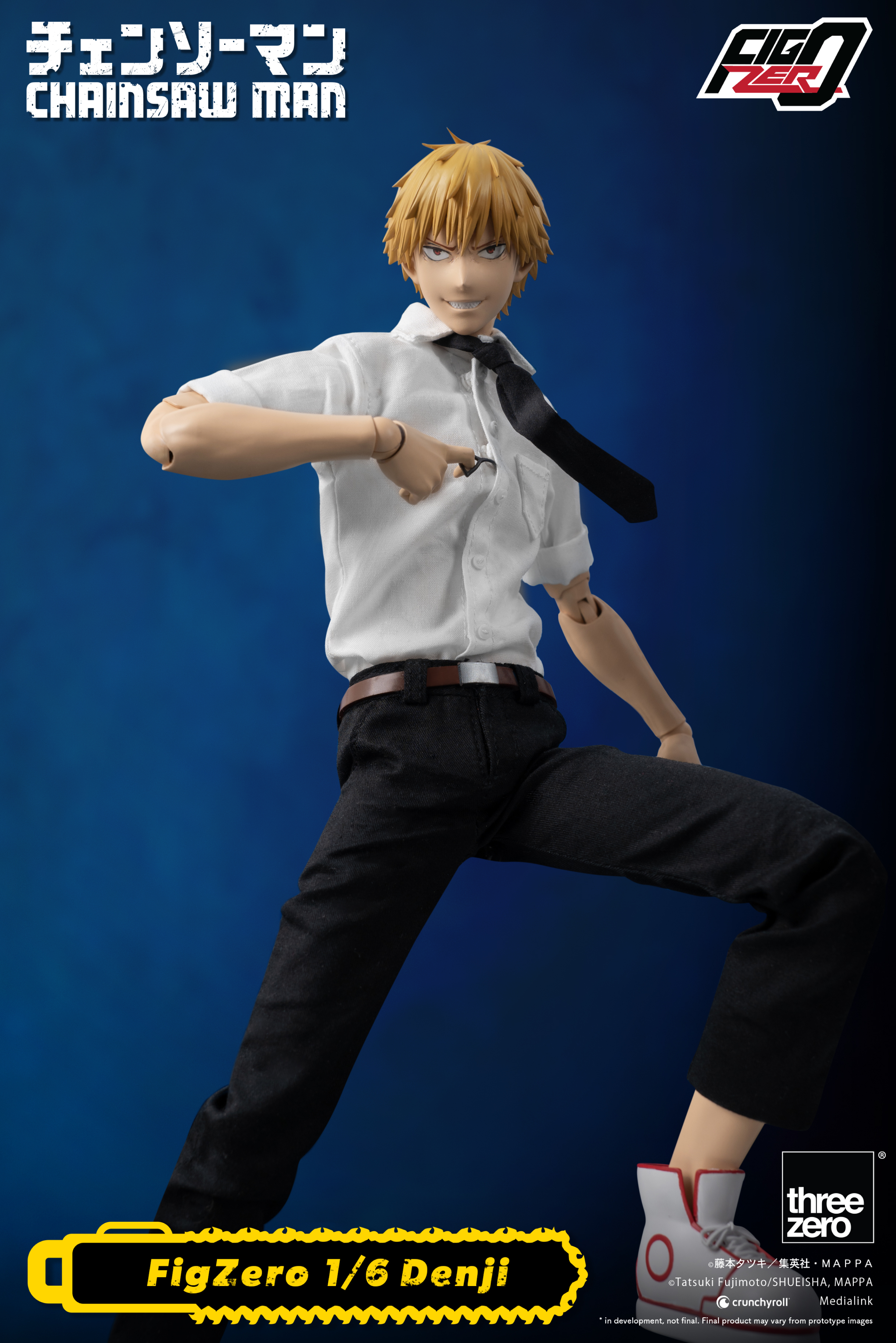 FigZero 1/6 Denji is approximately 11.6 inches (29.5 cm) tall, and is a fully-articulated collectible figure with over 27 points of articulation and a brand-new torso designed especially for the figure. All parts are sculpted by renowned Japanese sculptor Akinori Takaki.
