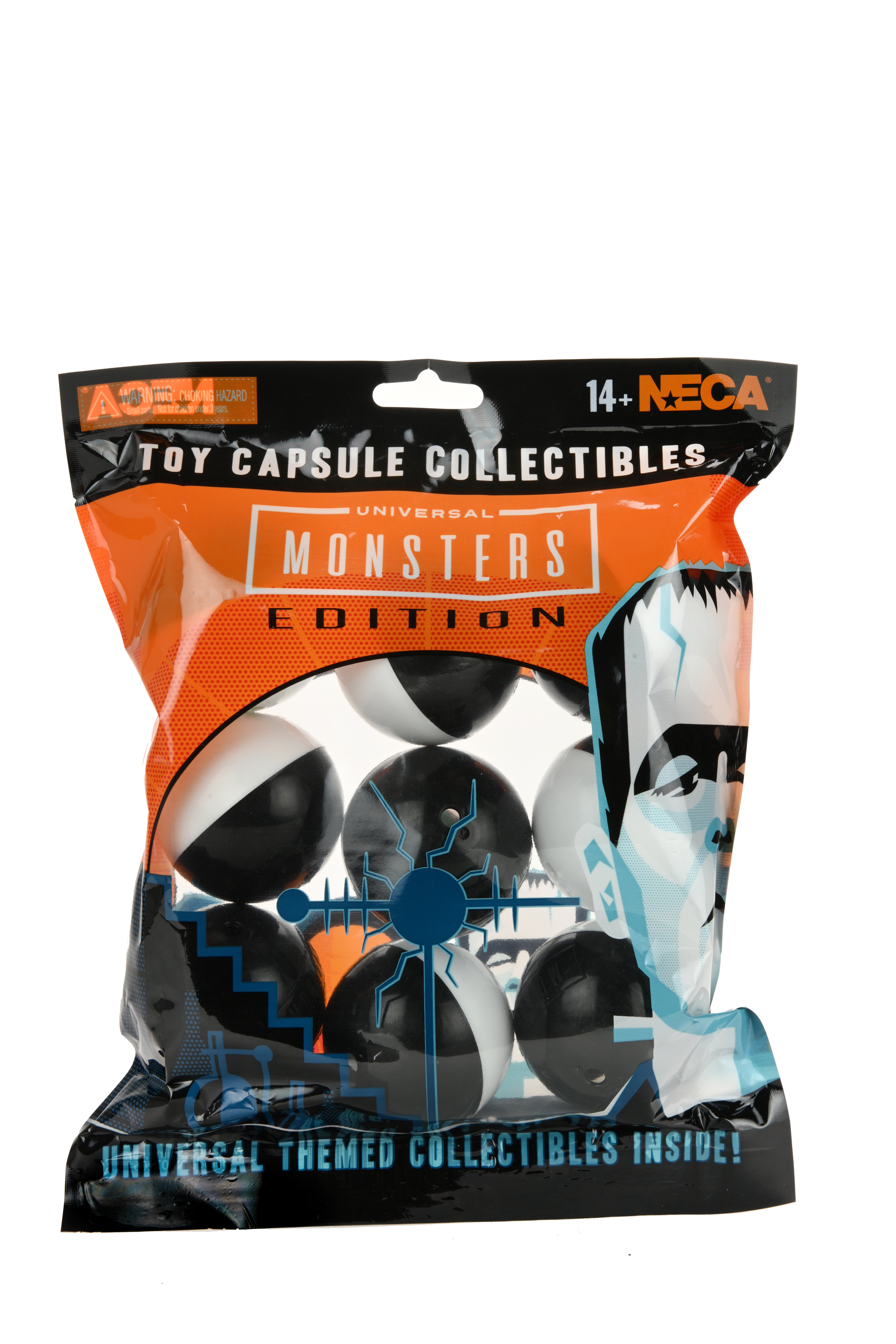Universal Monsters! Fans of the world-famous monsters of classic horror movies will enjoy opening all nine capsules to discover what surprises await. Possibilities include pins, patches, bracelets, magnets and much more! Each bag includes 9 mystery capsules. Collect them all!
