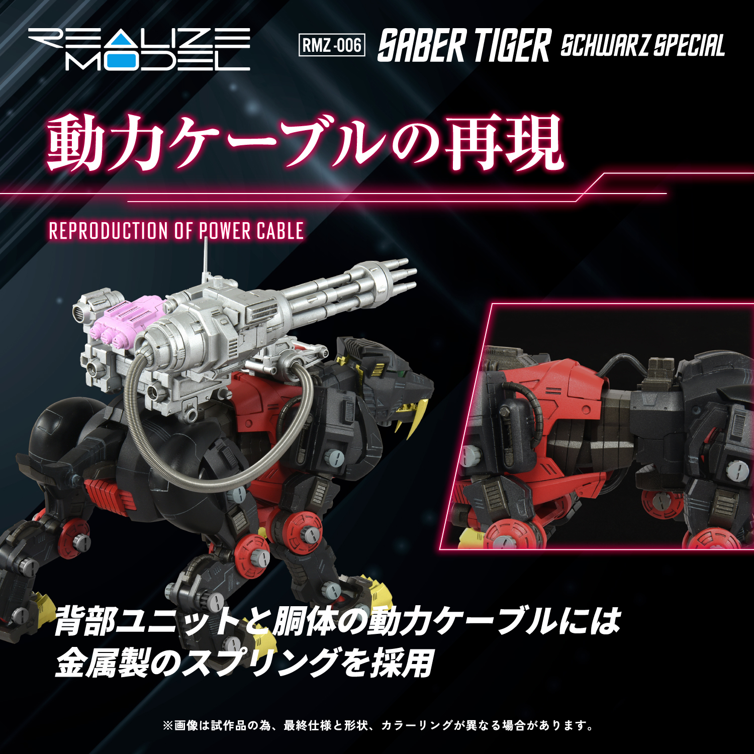 From Takara Tomy. The feline-type Zoid Saber Tiger (Schwarz Special Ver.) from "Zoids" is the latest member of Takara Tomy's 1/100-scale "Realize Model Zoids" model-kit lineup!