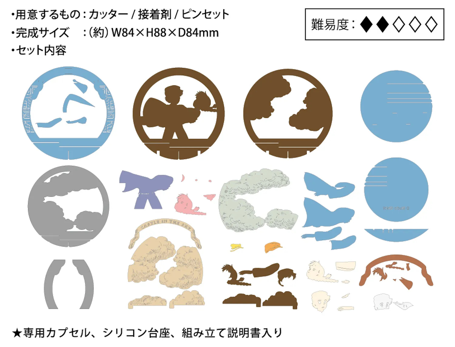 Castle in the Sky! Crafted with meticulous attention to detail and using high-quality paper, this Paper Theater kit offers a rewarding and enjoyable building experience. The precisely laser-cut pieces ensure a clean and professional finish, making it a perfect display piece for any Ghibli enthusiast. Each kit contains everything you need to assemble your own miniature Ghibli world.