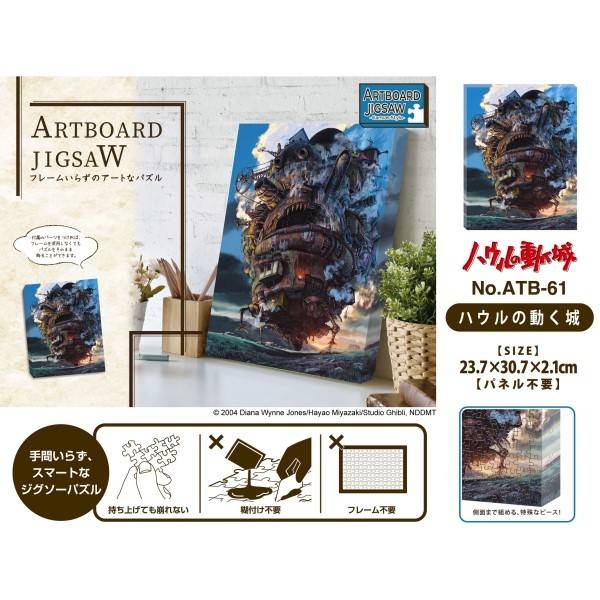 From Ensky. This 375 Piece Jigsaw Puzzle with a scene from Studio Ghibli's Howl's Moving Castle emulates the look of an Artboard Canvas Print with pieces snap together as they assemble. Puzzle measures approximately 11.97" x 9.24" when completed.