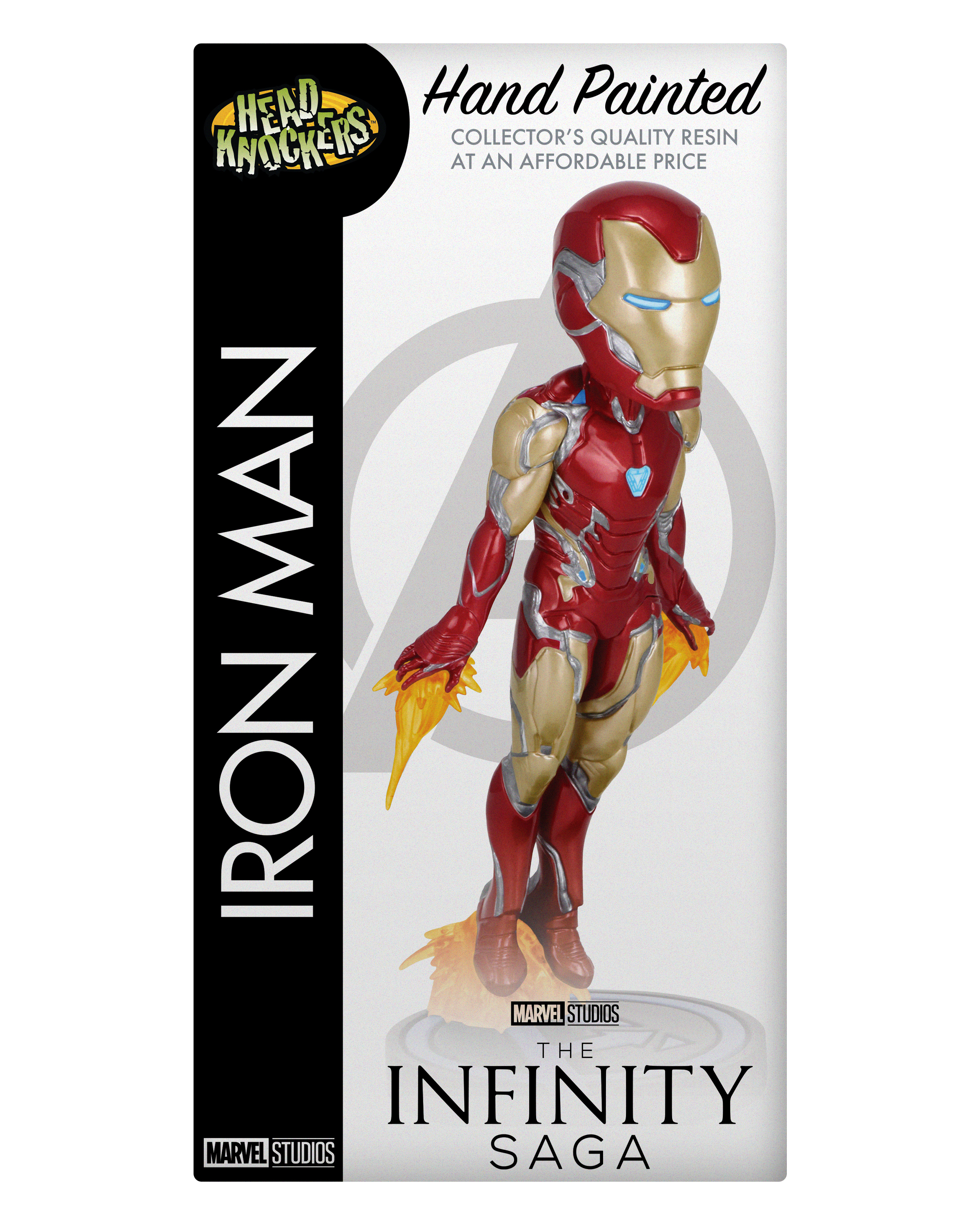 From NECA. From Marvel's Infinity Saga, this Iron Man Head Knocker stands over 8" tall with bobbling head. It's cast in resin and then individually painted by hand for fantastic detail, down to the themed base. Comes in collectible matte finish packaging with spot gloss.