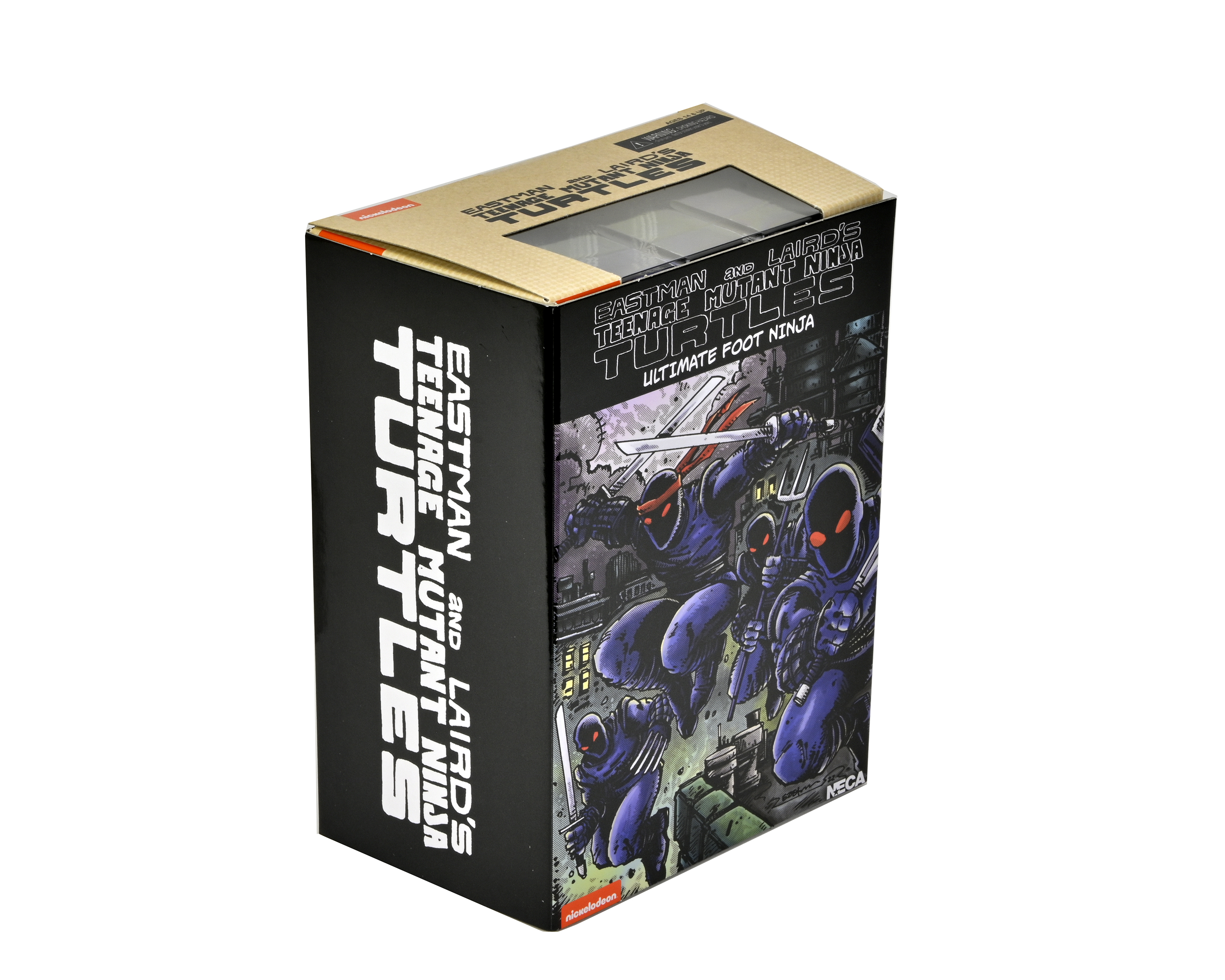 From NECA. NECA is thrilled to announce its first Ultimate figure from the original Eastman & Laird Teenage Mutant Ninja Turtles comic books from Mirage Studios! The "Ultimate" minion, the faceless Foot Ninja stands ready to do the bidding of the sinister Shredder, leader of his clan. This deadly ninja stands approximately 7" tall, and includes extra heads, extra hands, cloth robe, hood, bow & arrow, quiver, sword & sheath, ninja stars, trident, katar, butterfly sword, katana, knife, kusarigama, and tekko kagi! Comes in collector-friendly 5 panel packaging with opening front flap featuring all new art by Kevin Eastman.