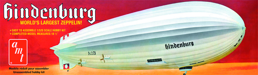 The Hindenberg was an indelible icon of lighter-than-air flight. The airship Hindenberg LZ 129 serviced affluent clientele with relatively quick service across the Atlantic until its final disastrous approach to a New Jersey airfield where it burst into flames. This model kit is comprised of 32 glue-together plastic pieces and is injected in gray plastic. A display base is included along with a DC-3 airliner that demonstrates the comparative size of the airship.