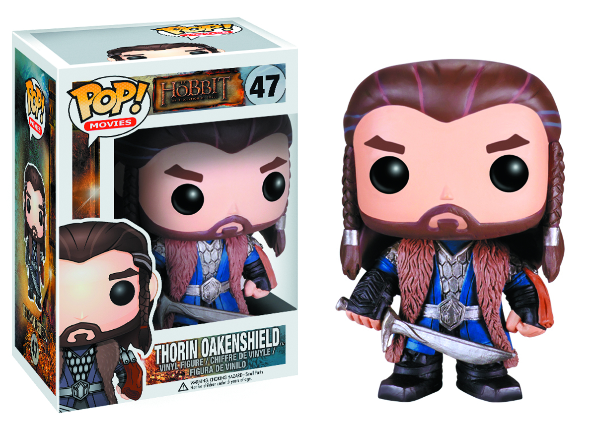 Inspired by the urban and stylized character designs of today's designer toys, Funko brings the world of J.R.R. Tolkien's Middle-Earth to life as never before with the second series of their POP! The Hobbit Movie Vinyl Figures, based on this winter's highly anticipated film, The Hobbit: The Desolation of Smaug! These 3 3/4" figures of Azog the Defiler, Bilbo Baggins (Invisible), Gandalf the Grey (Hatless), Legolas, and Thorin Oakenshield feature Funko's uniquely stylized design, rotating heads, and articulation. Window box packaging.