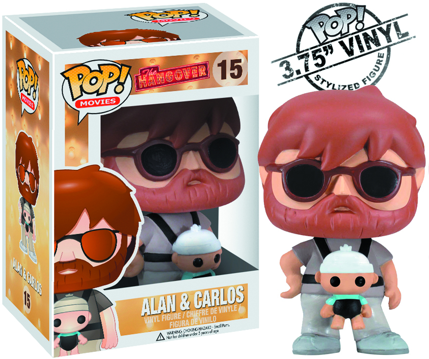 The Hangover, a tale of several friends and the drunken adventure they have in Las Vegas before the wedding of one of them. The break-out character of the film is Alan, and Funko creates a uniquely cool version of Alan and the baby he carries with their